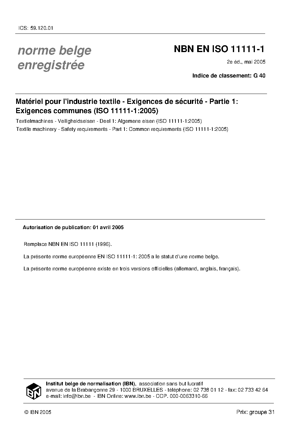 | Publisher | Bureau de Normalisation Belge (NBN) |