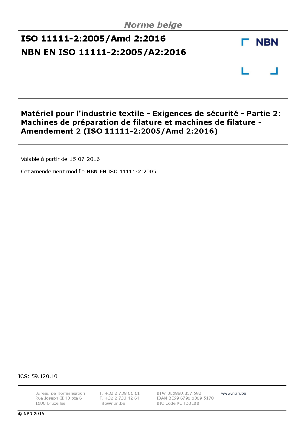 | Publisher | Bureau de Normalisation Belge (NBN) |