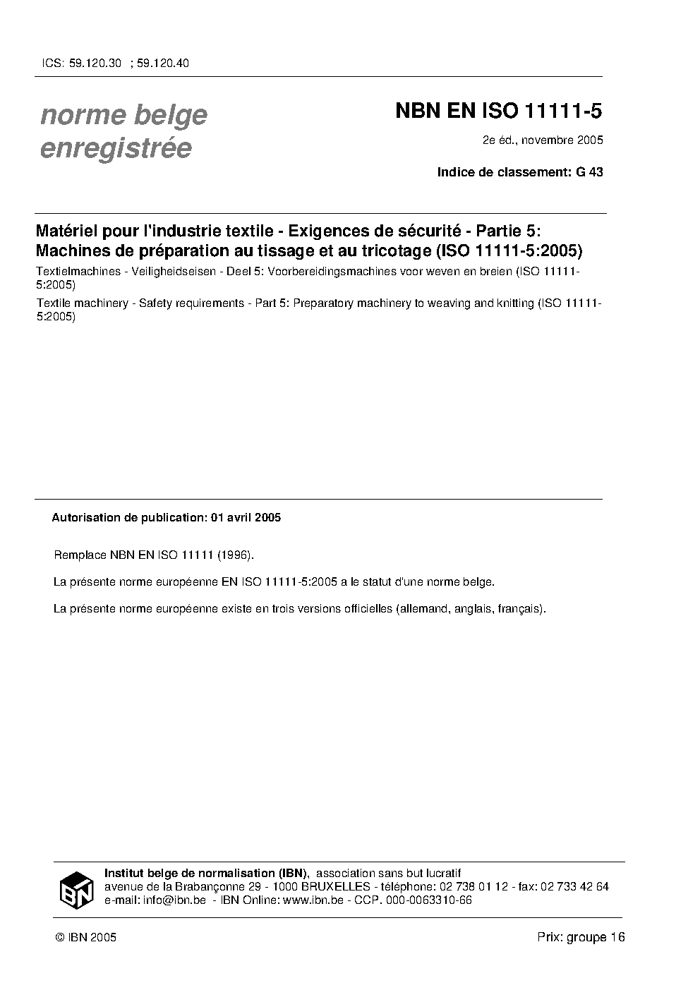 | Publisher | Bureau de Normalisation Belge (NBN) |