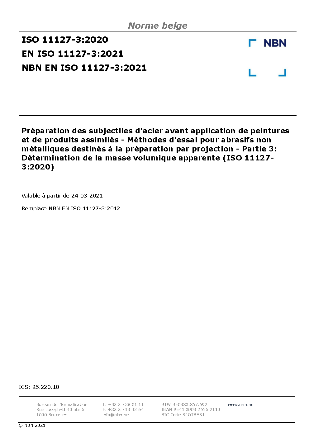 Preparation of steel substrates before application of paints and related products - Test methods for non-metallic blast-cleaning abrasives - Part 3: Determination of apparent density (ISO 11127-3:2020)