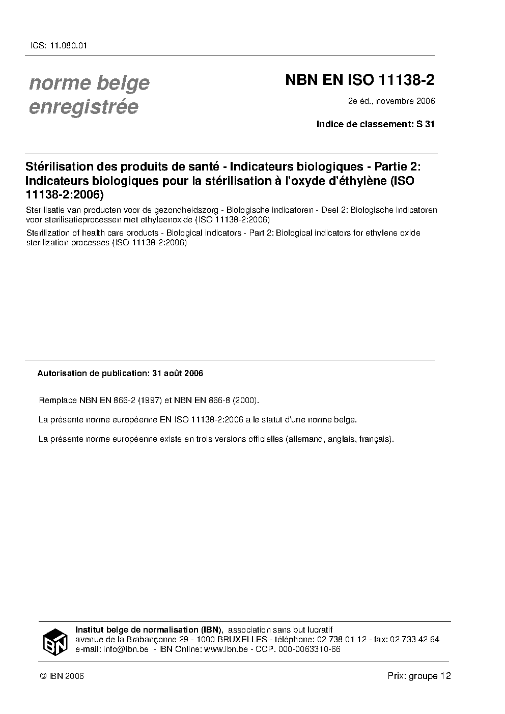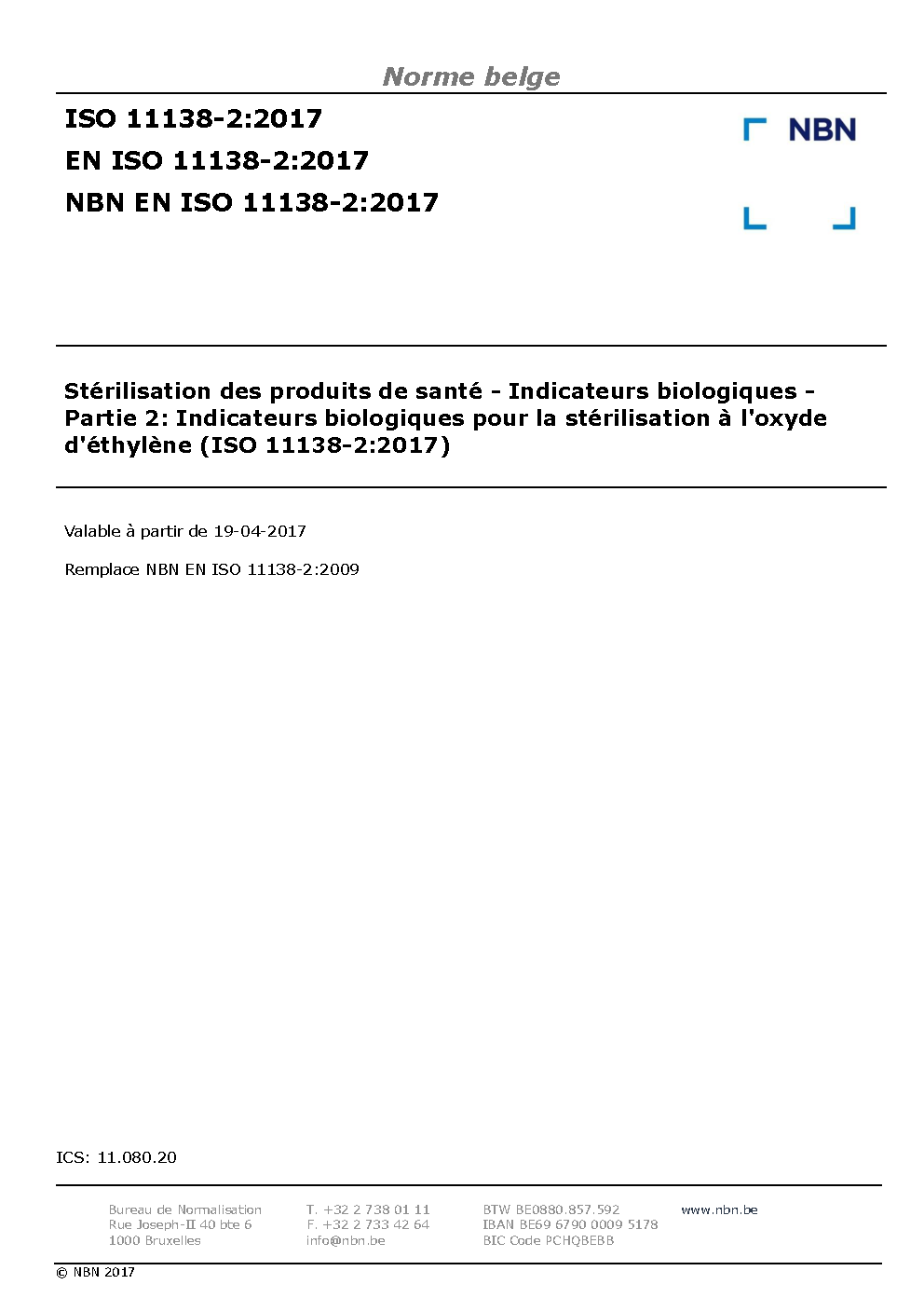 | Publisher | Bureau de Normalisation Belge (NBN) |