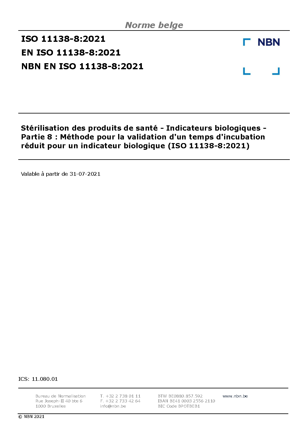 Sterilization of health care products - Biological indicators - Part 8: Method for validation of a reduced incubation time for a biological indicator (ISO 11138-8:2021)