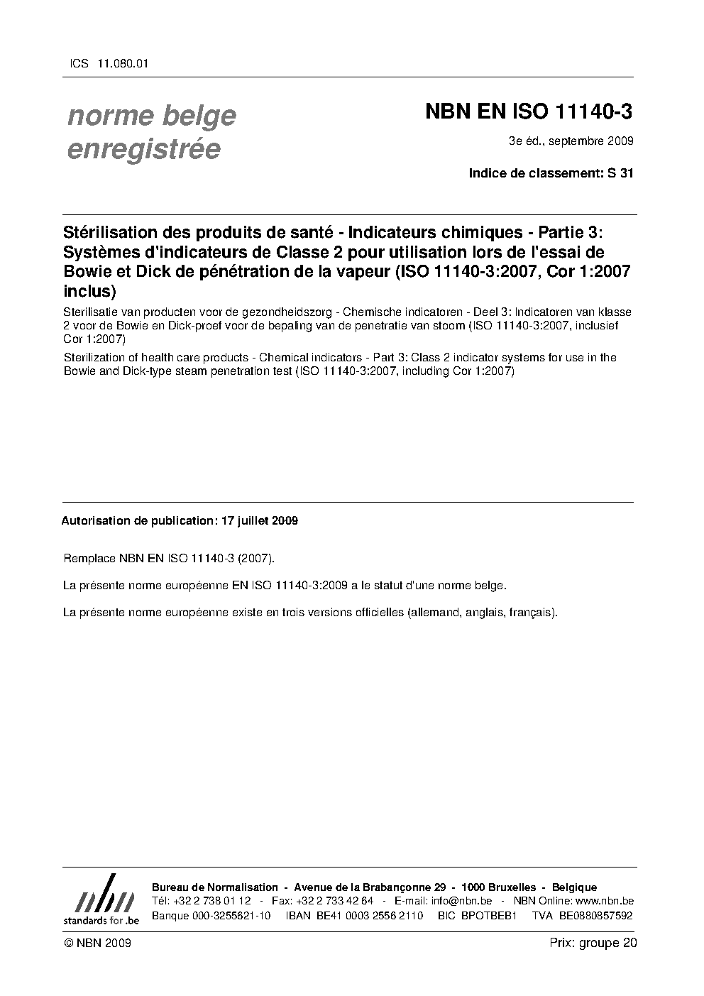 | Publisher | Bureau de Normalisation Belge (NBN) |