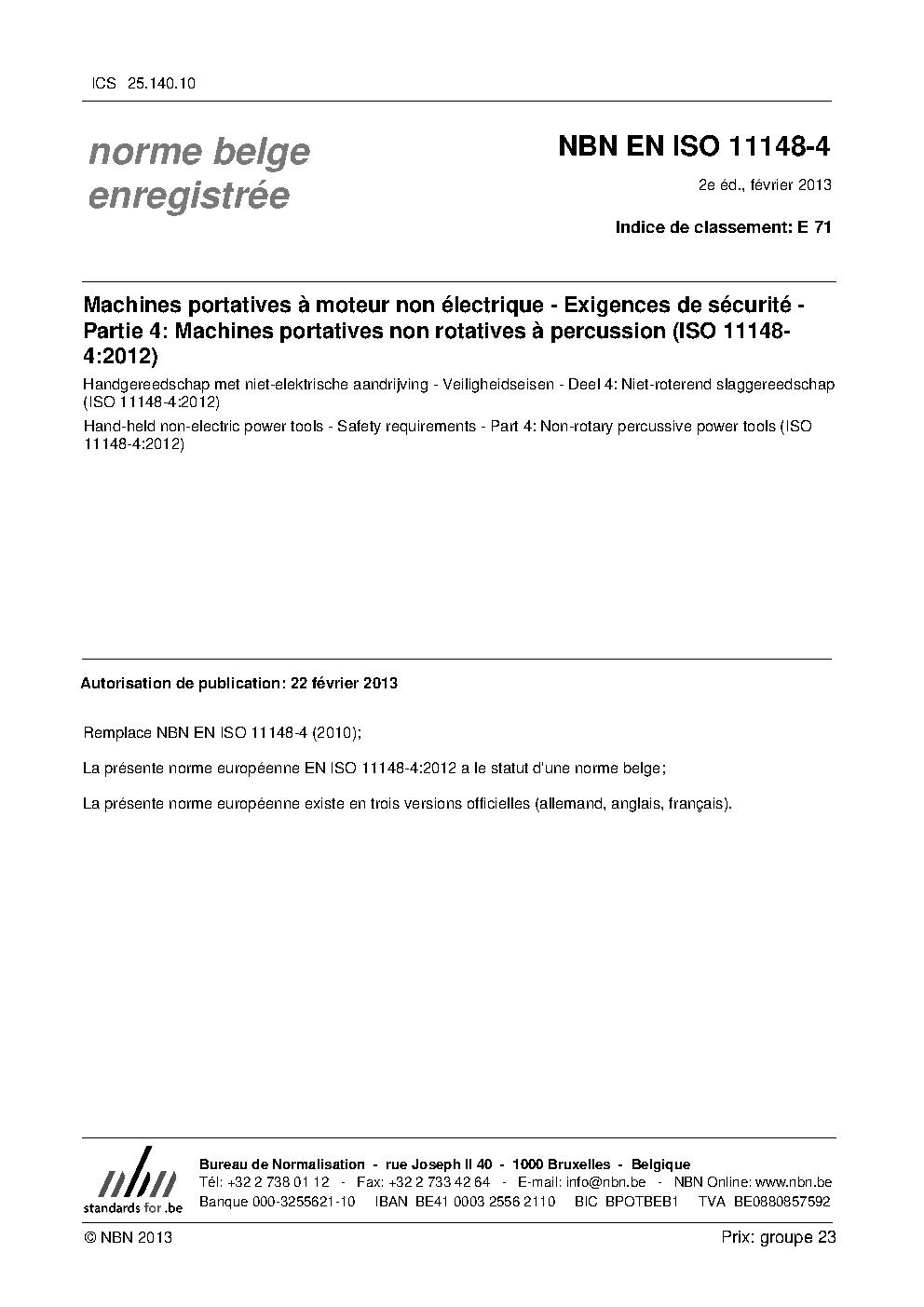 | Publisher | Bureau de Normalisation Belge (NBN) |