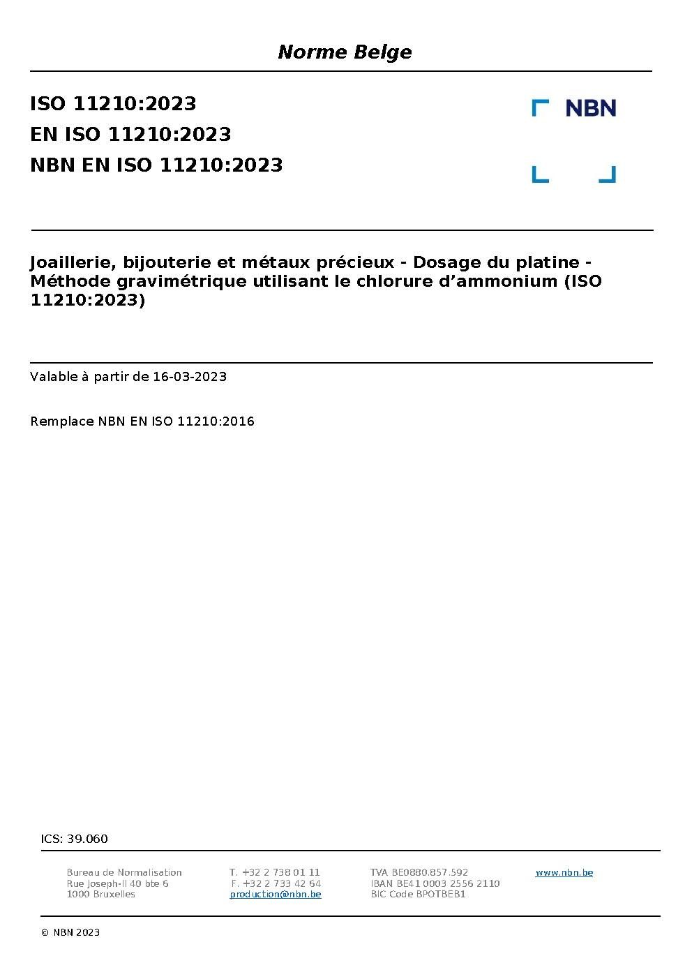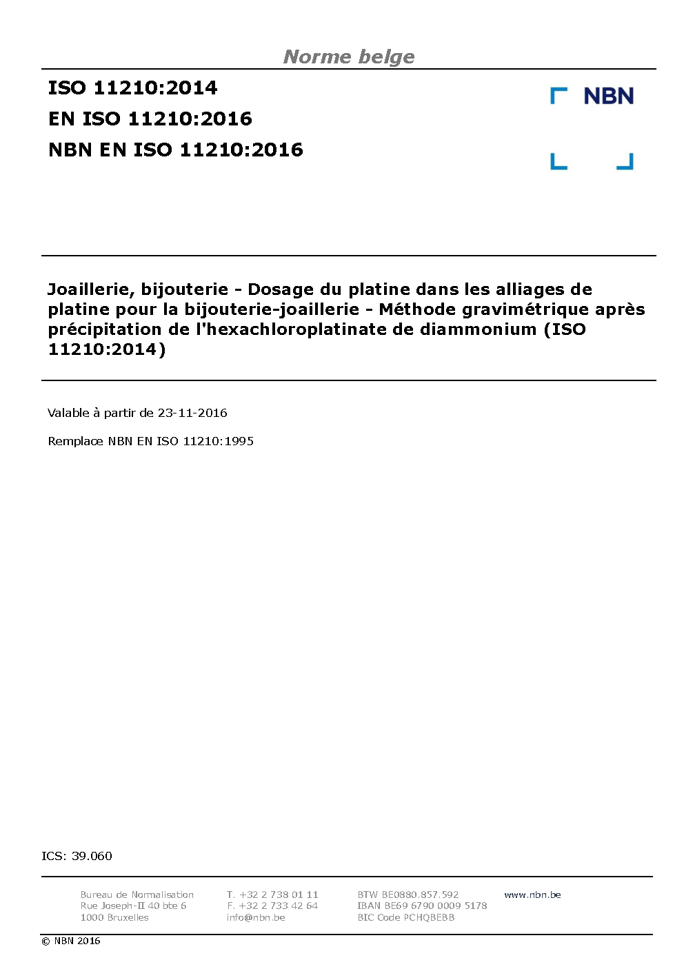 | Publisher | Bureau de Normalisation Belge (NBN) |