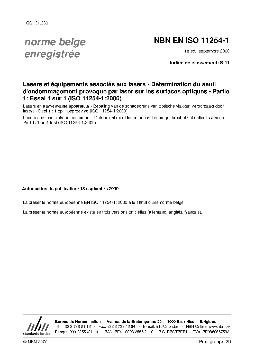 | Publisher | Bureau de Normalisation Belge (NBN) |