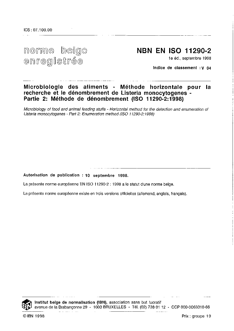 | Publisher | Bureau de Normalisation Belge (NBN) |