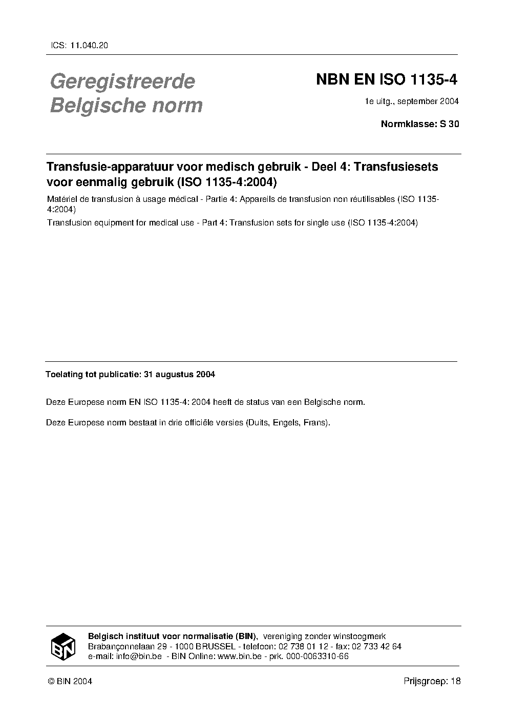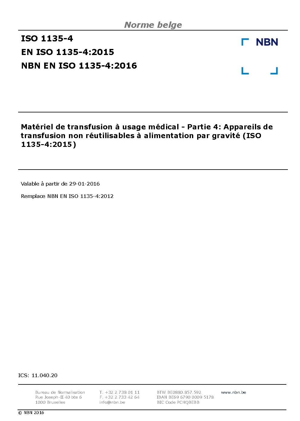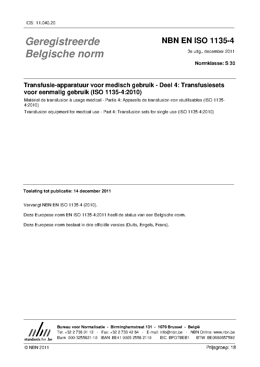 | Publisher | Bureau de Normalisation Belge (NBN) |