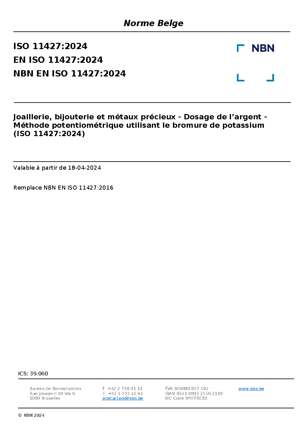 | Publisher | Bureau de Normalisation Belge (NBN) |