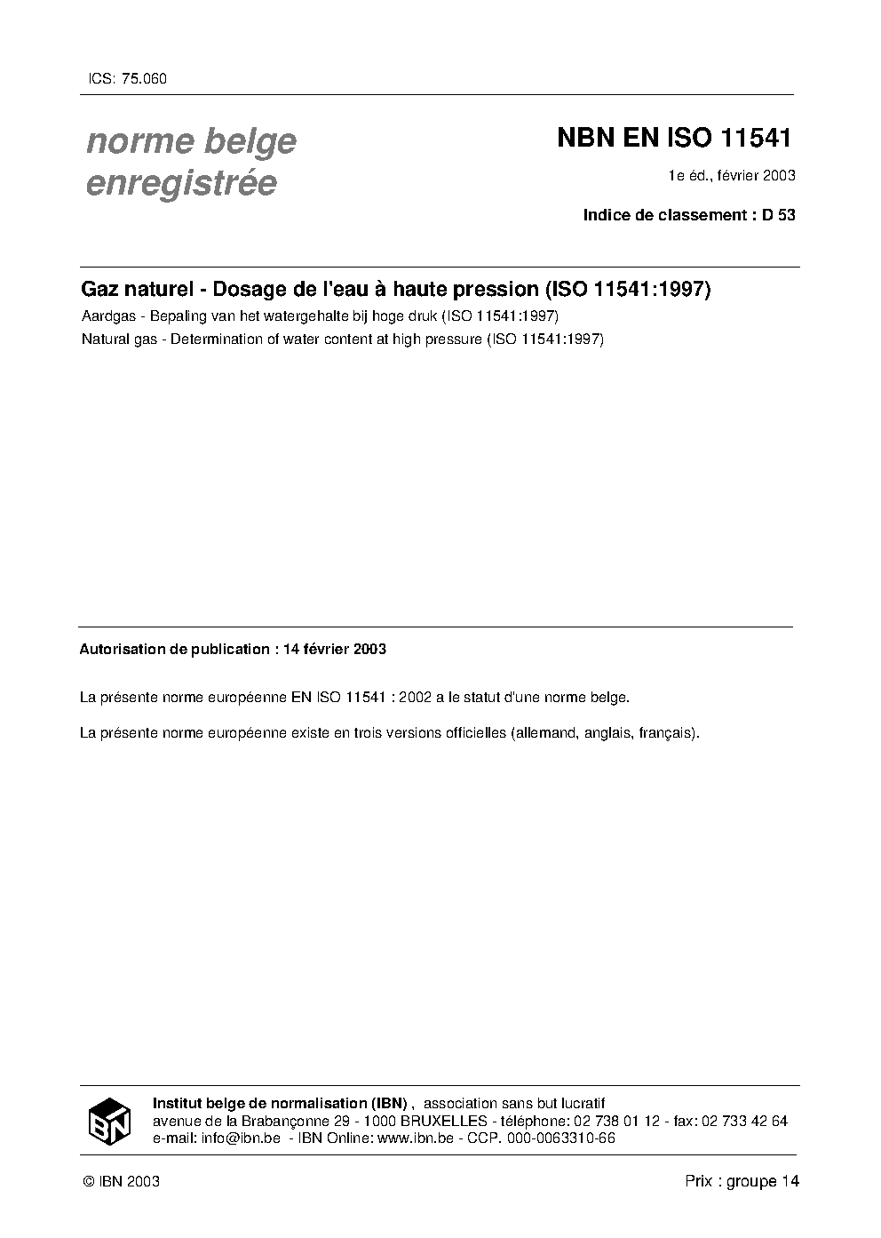 | Publisher | Bureau de Normalisation Belge (NBN) |