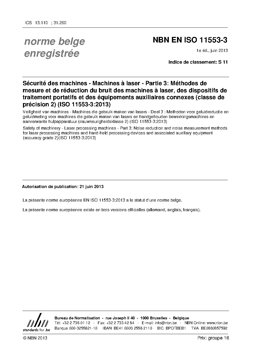 NBN EN ISO 11553-3:2013