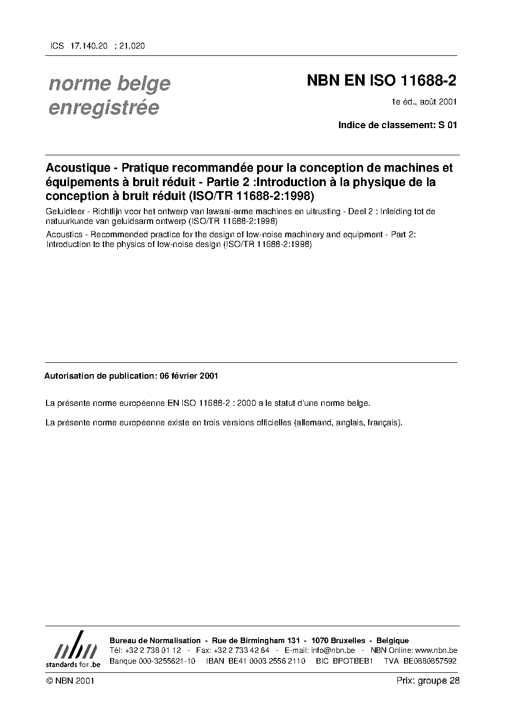 | Publisher | Bureau de Normalisation Belge (NBN) |