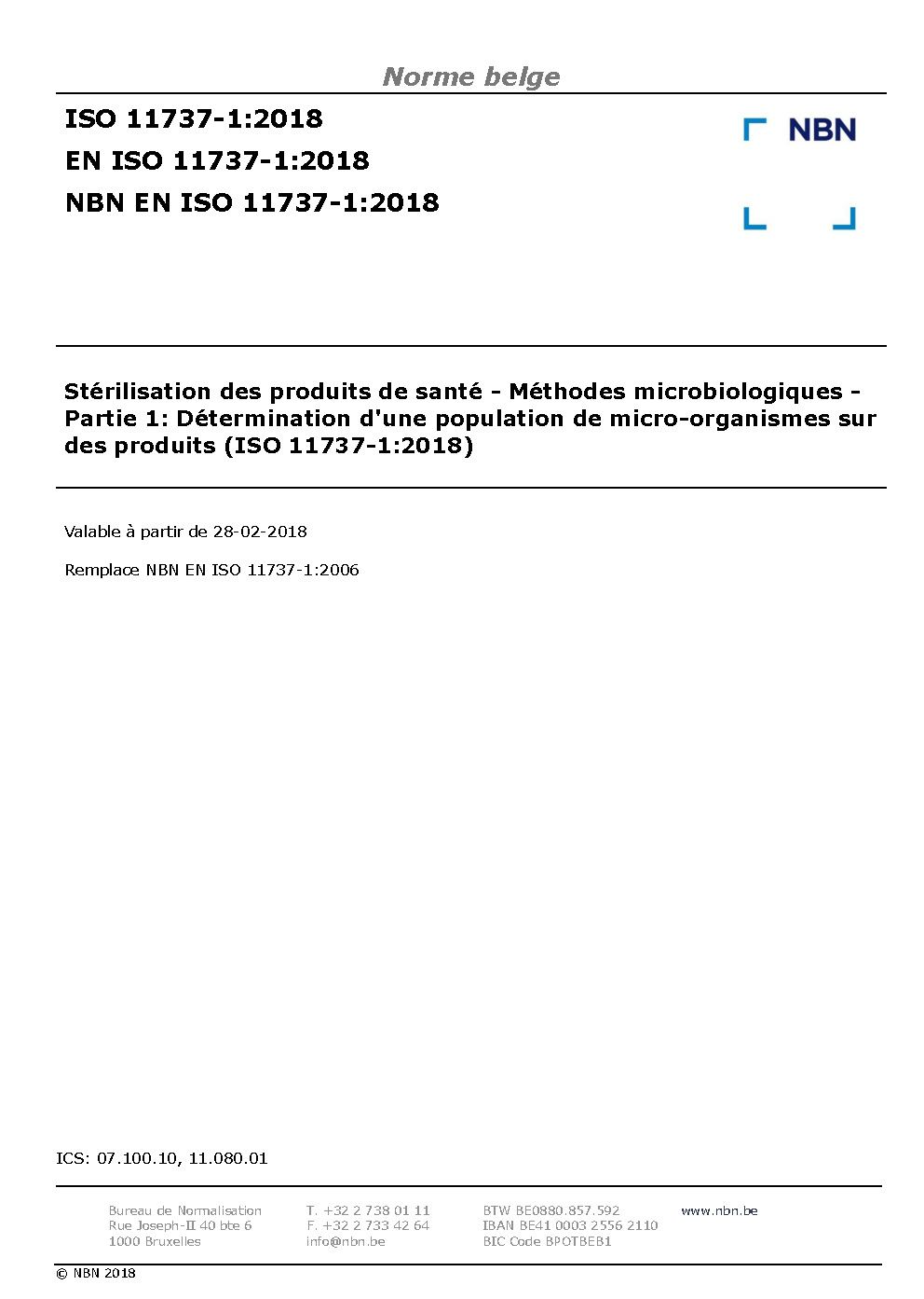 | Publisher | Bureau de Normalisation Belge (NBN) |