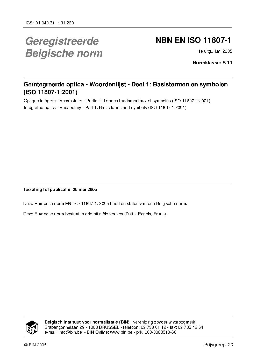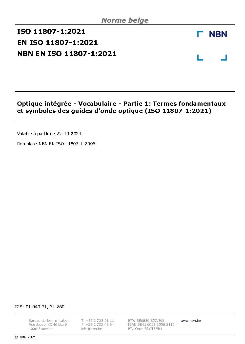 | Publisher | Bureau de Normalisation Belge (NBN) |