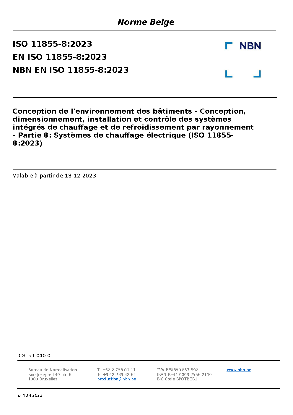 | Publisher | Bureau de Normalisation Belge (NBN) |