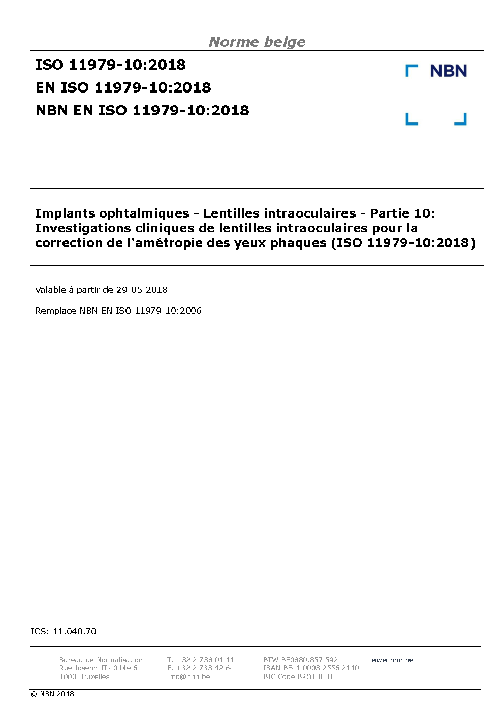 ISO 11979-10:2006 addresses specific requirements for PIOLs not addressed in the other parts of ISO 11979.