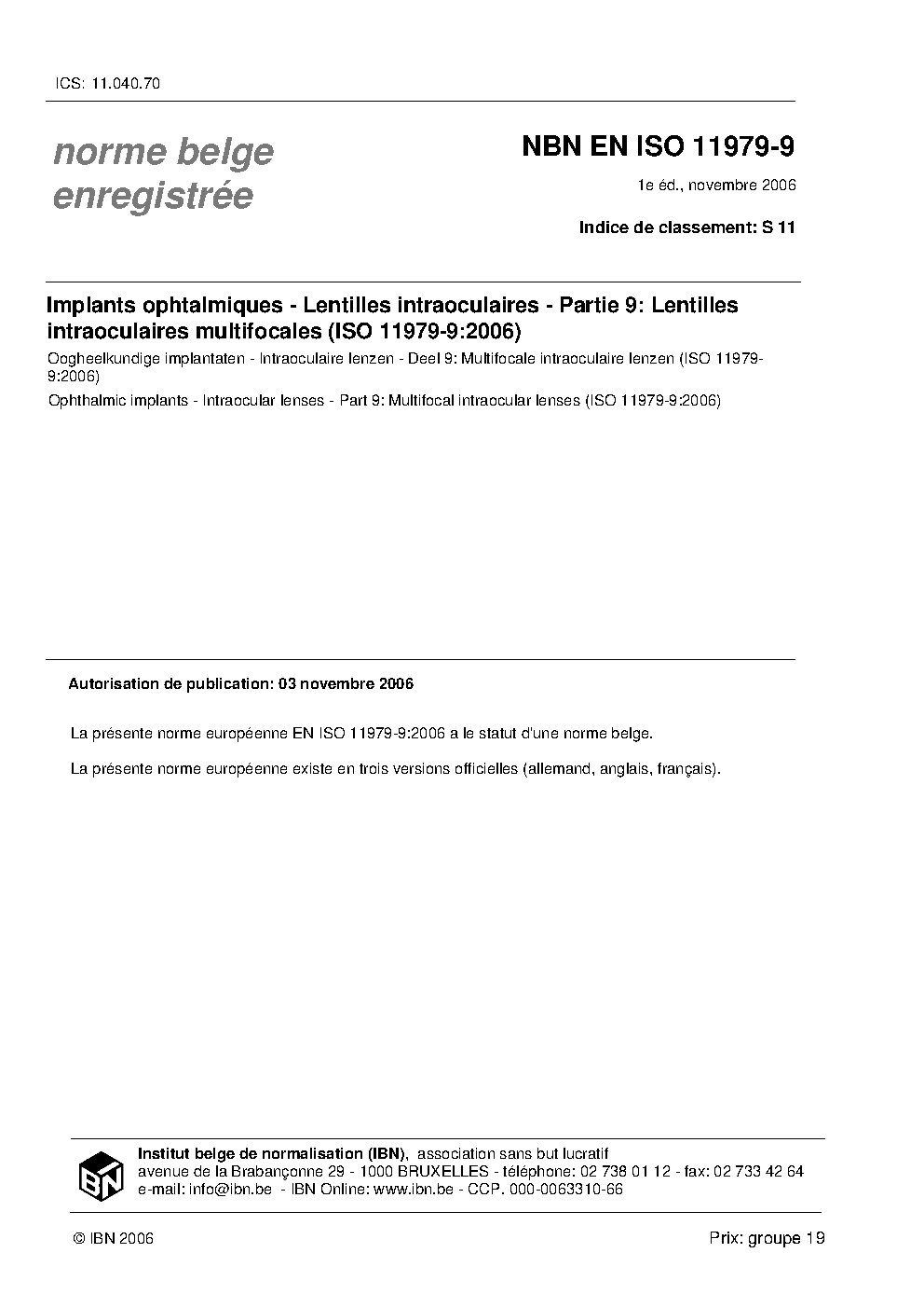 NBN EN ISO 11979-9:2006