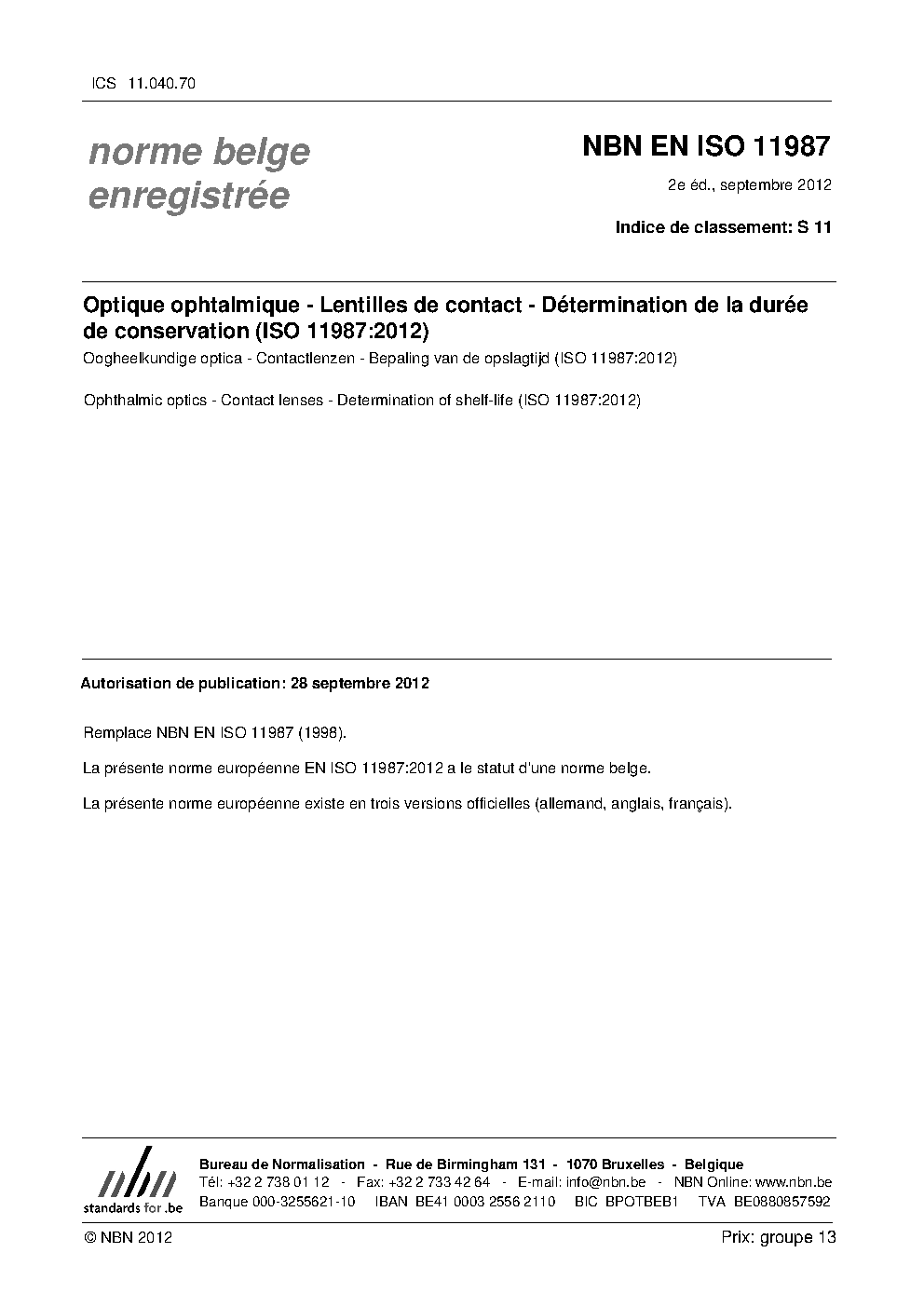 | Publisher | Bureau de Normalisation Belge (NBN) |