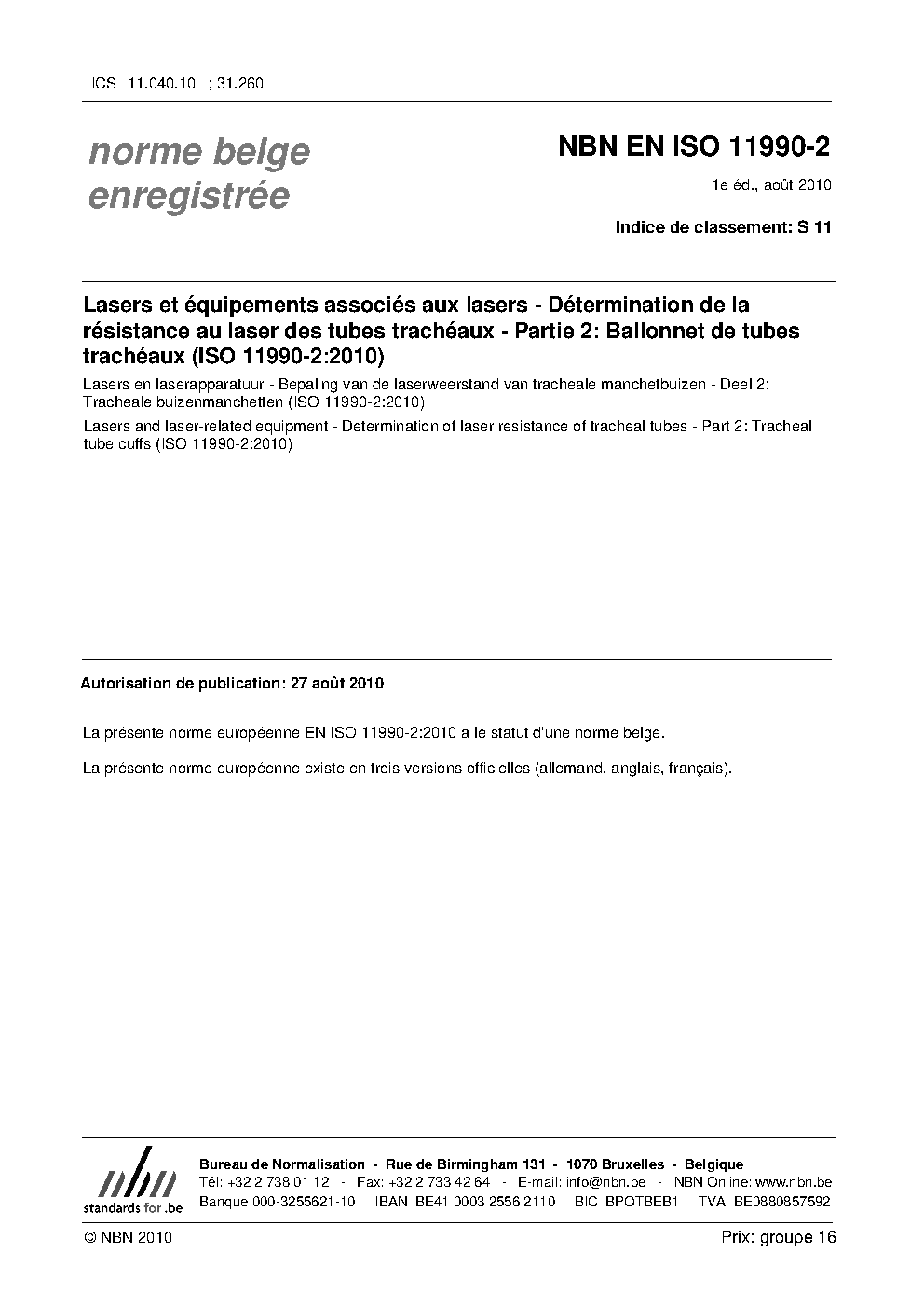 | Publisher | Bureau de Normalisation Belge (NBN) |