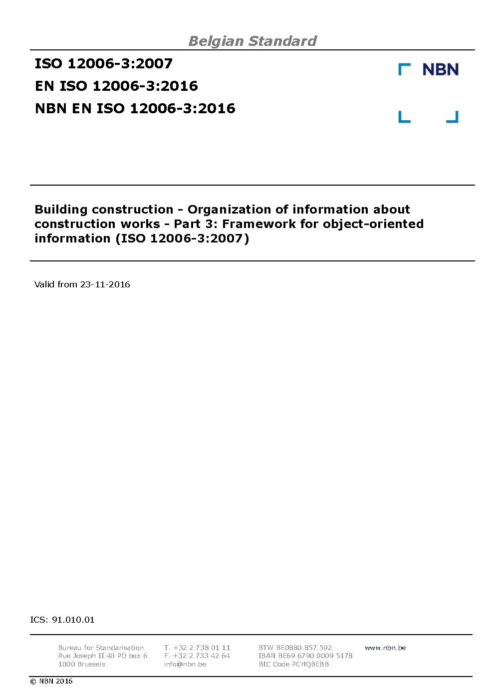 | Publisher | Bureau de Normalisation Belge (NBN) |