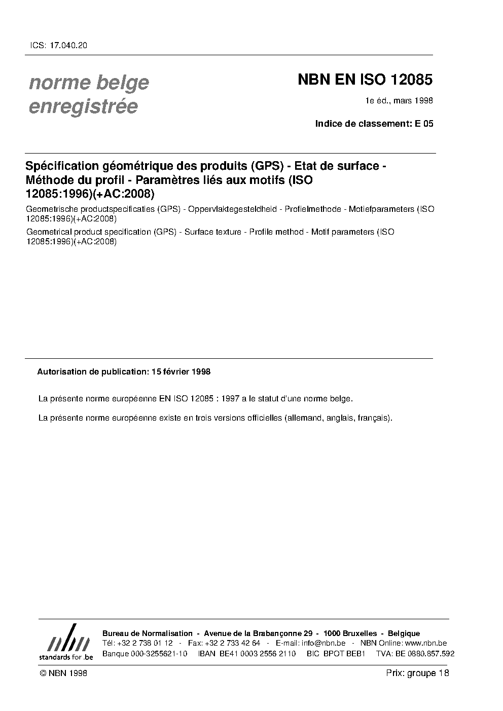 | Publisher | Bureau de Normalisation Belge (NBN) |