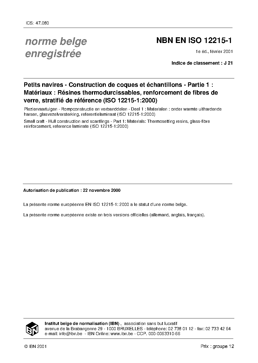 | Publisher | Bureau de Normalisation Belge (NBN) |