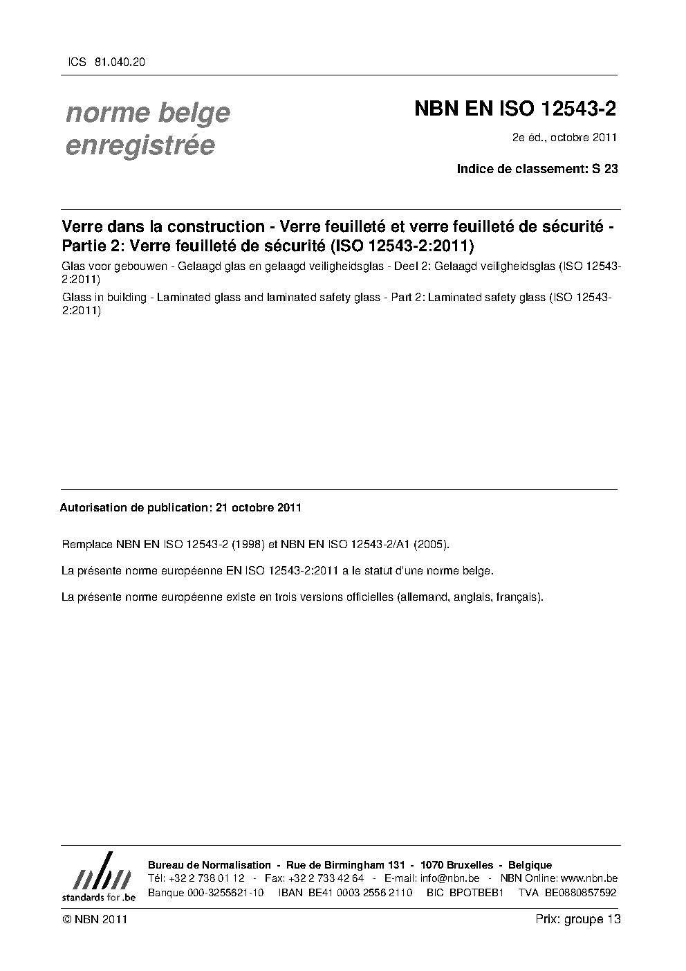 | Publisher | Bureau de Normalisation Belge (NBN) |