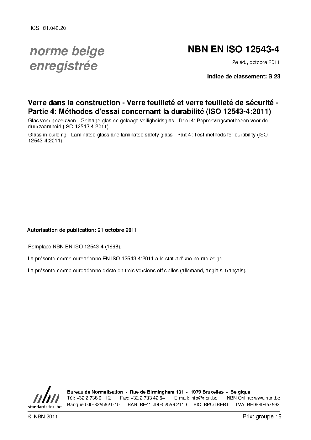 | Publisher | Bureau de Normalisation Belge (NBN) |