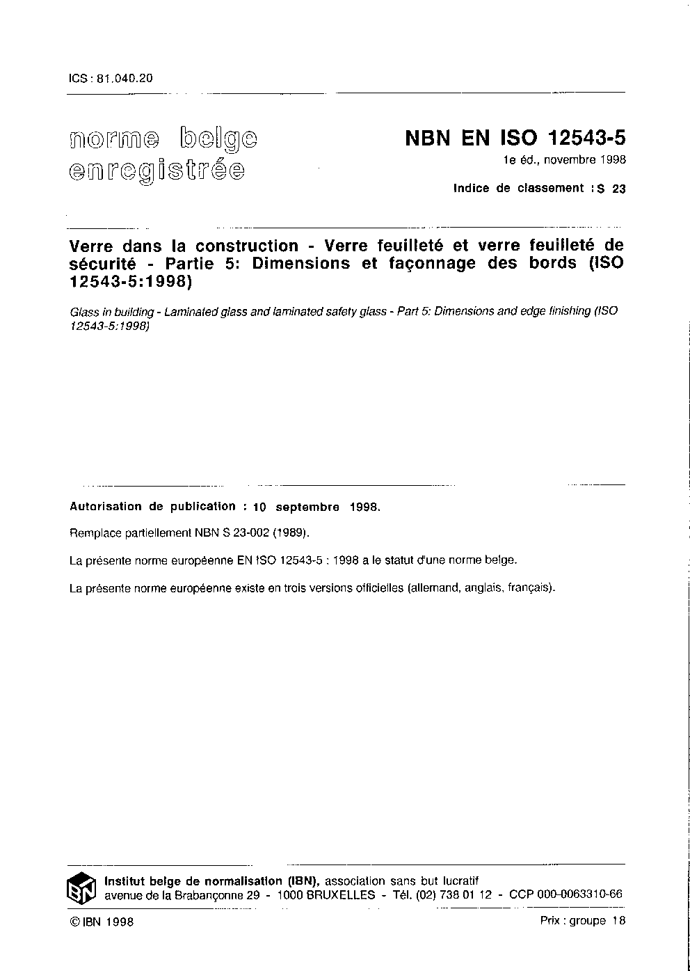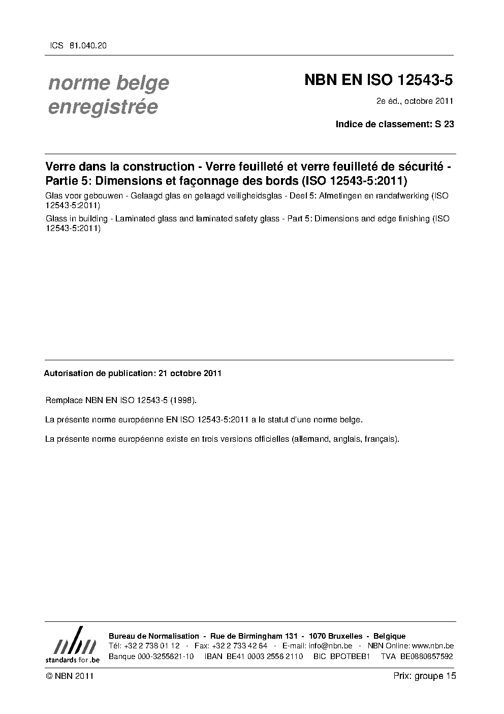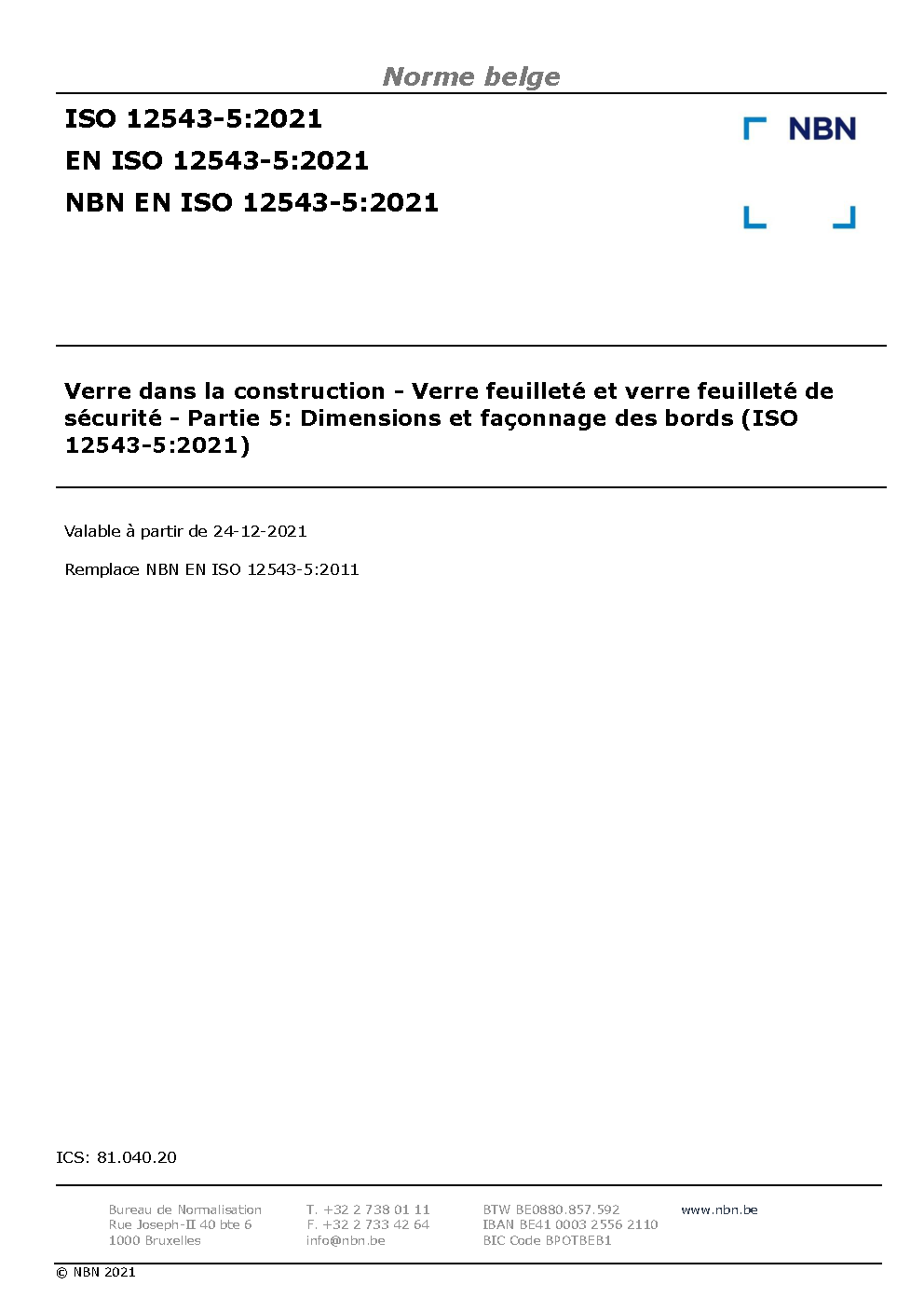 | Publisher | Bureau de Normalisation Belge (NBN) |