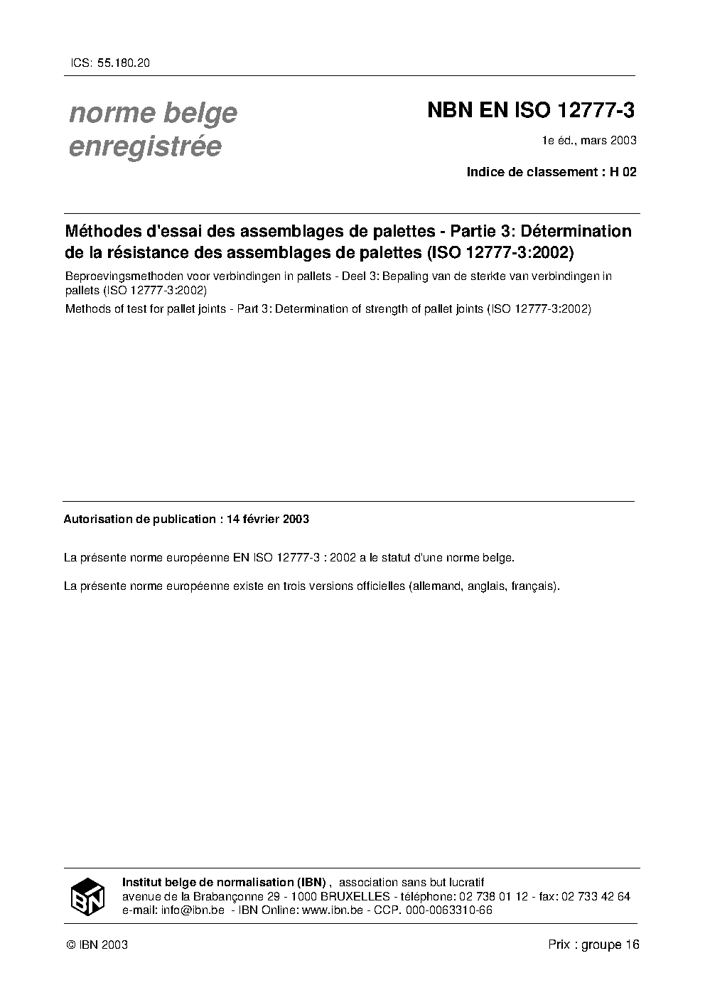 | Publisher | Bureau de Normalisation Belge (NBN) |