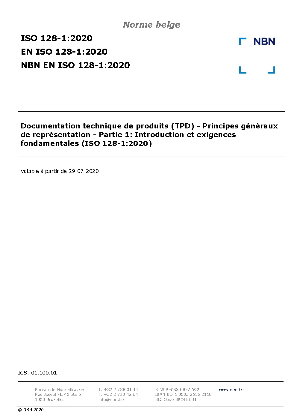 Technical product documentation (TPD) - General principles of representation - Part 1: Introduction and fundamental requirements (ISO 128-1:2020)
