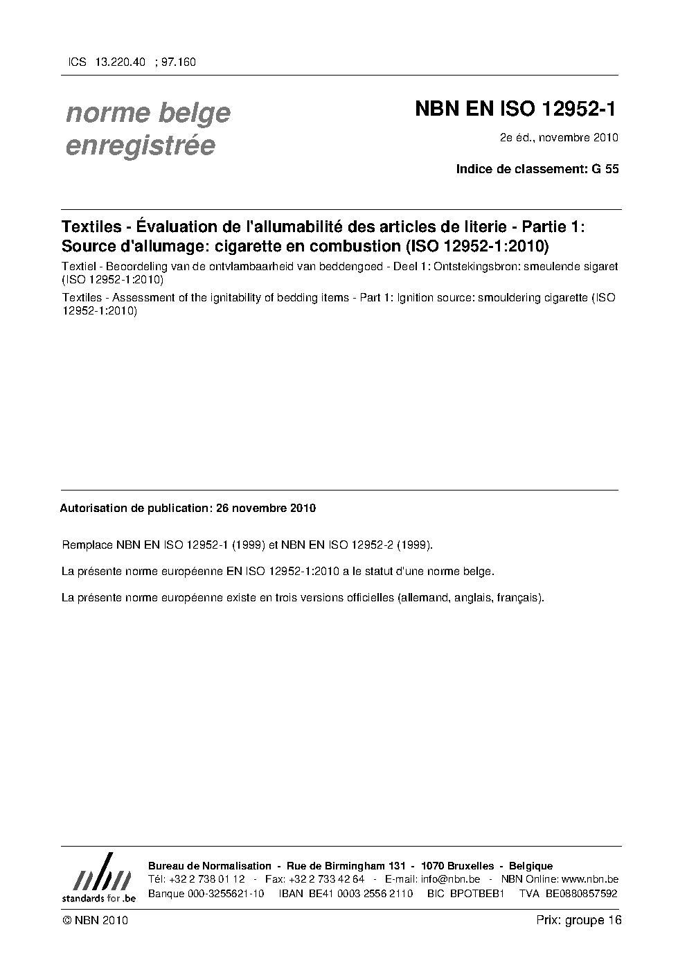 | Publisher | Bureau de Normalisation Belge (NBN) |