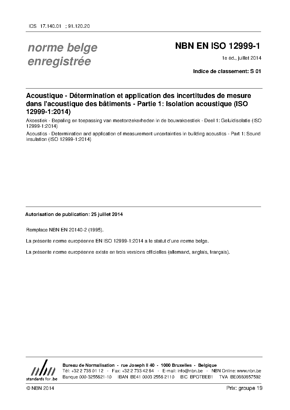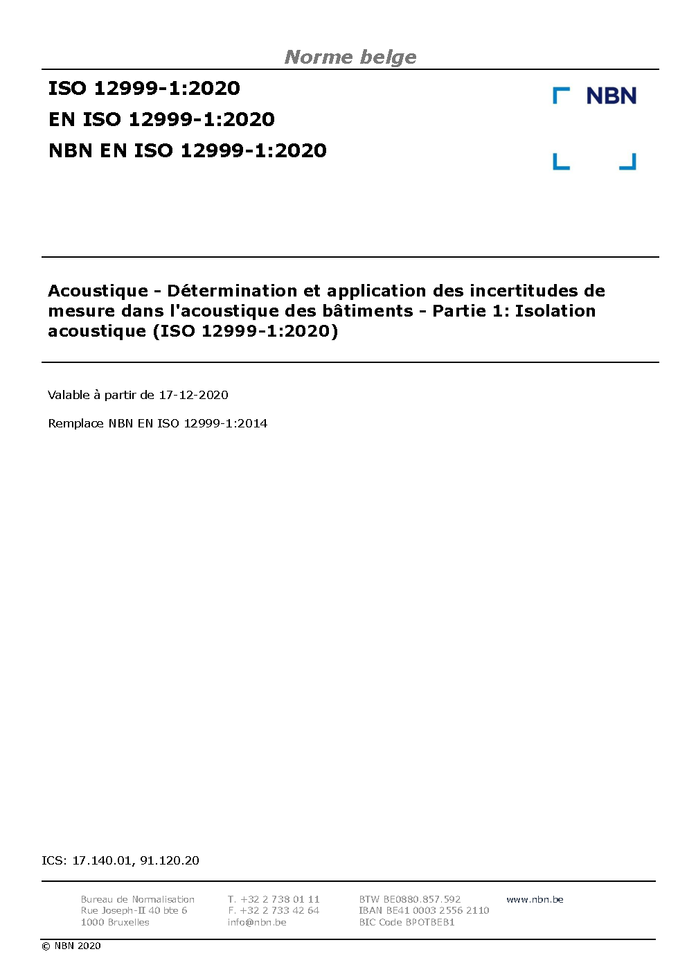 | Publisher | Bureau de Normalisation Belge (NBN) |