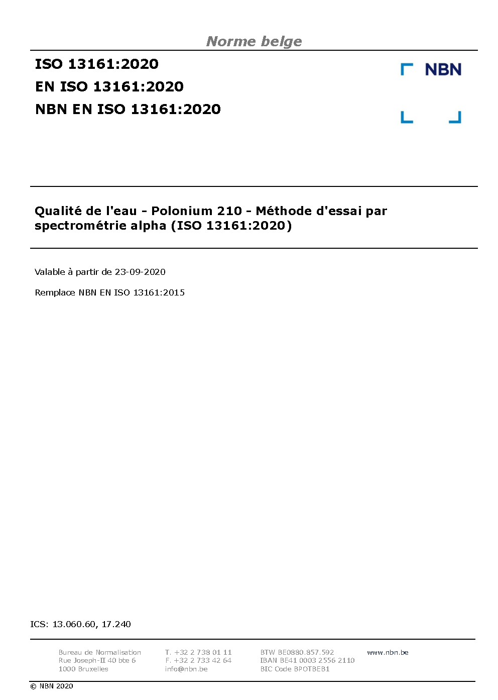 | Publisher | Bureau de Normalisation Belge (NBN) |