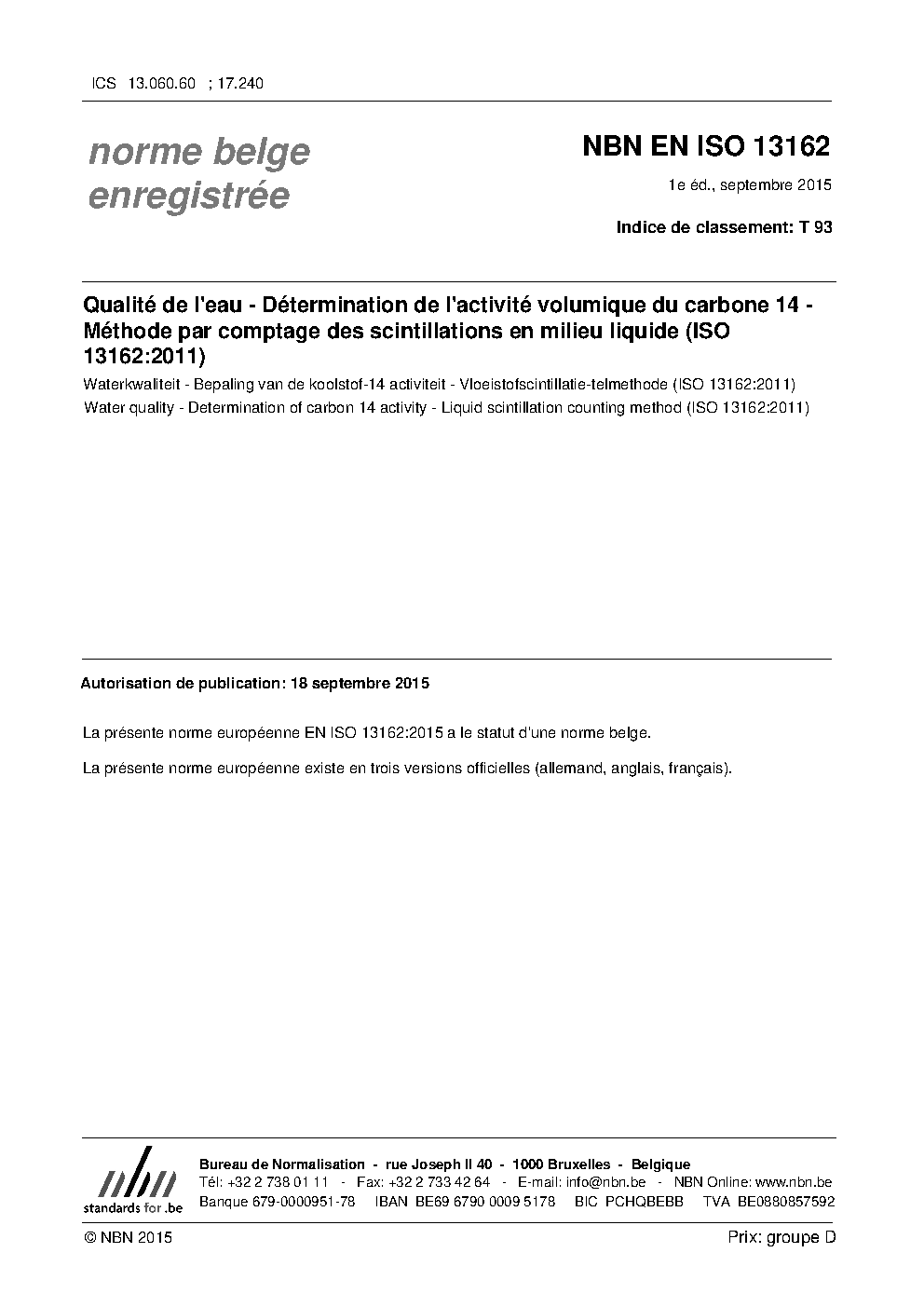| Publisher | Bureau de Normalisation Belge (NBN) |