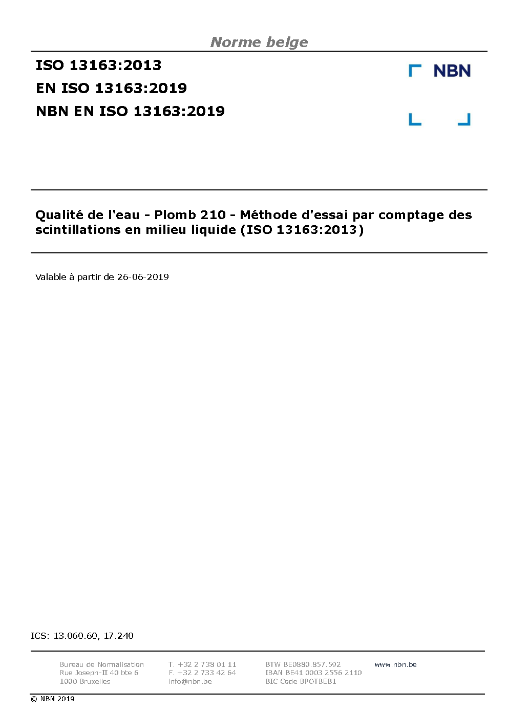 Water quality - Lead-210 - Test method using liquid scintillation counting (ISO 13163:2021)