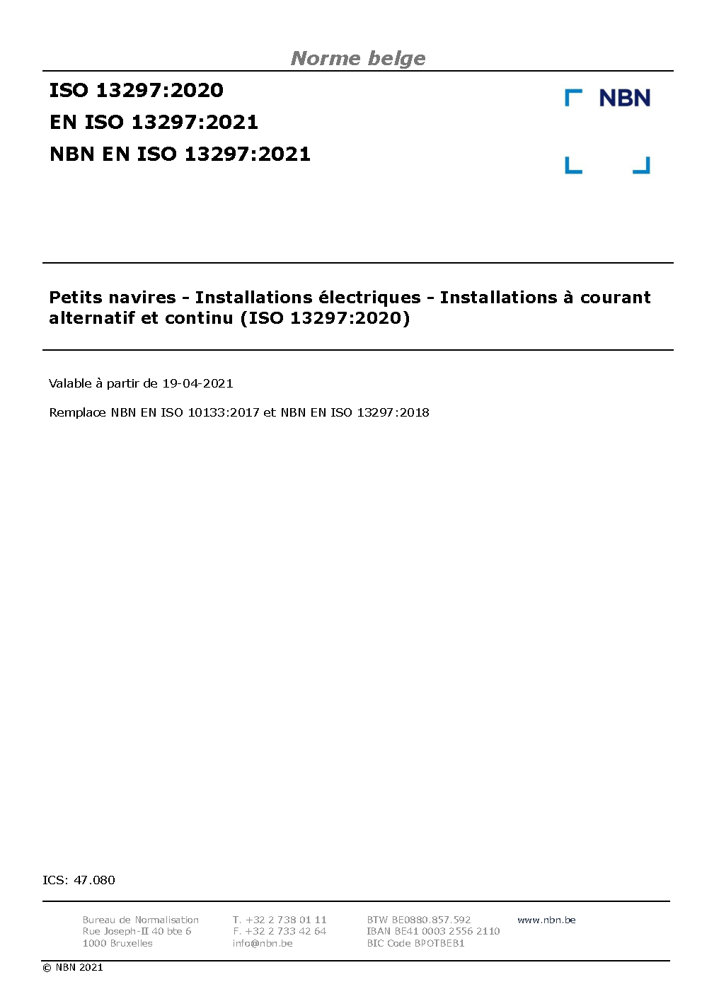 | Publisher | Bureau de Normalisation Belge (NBN) |
