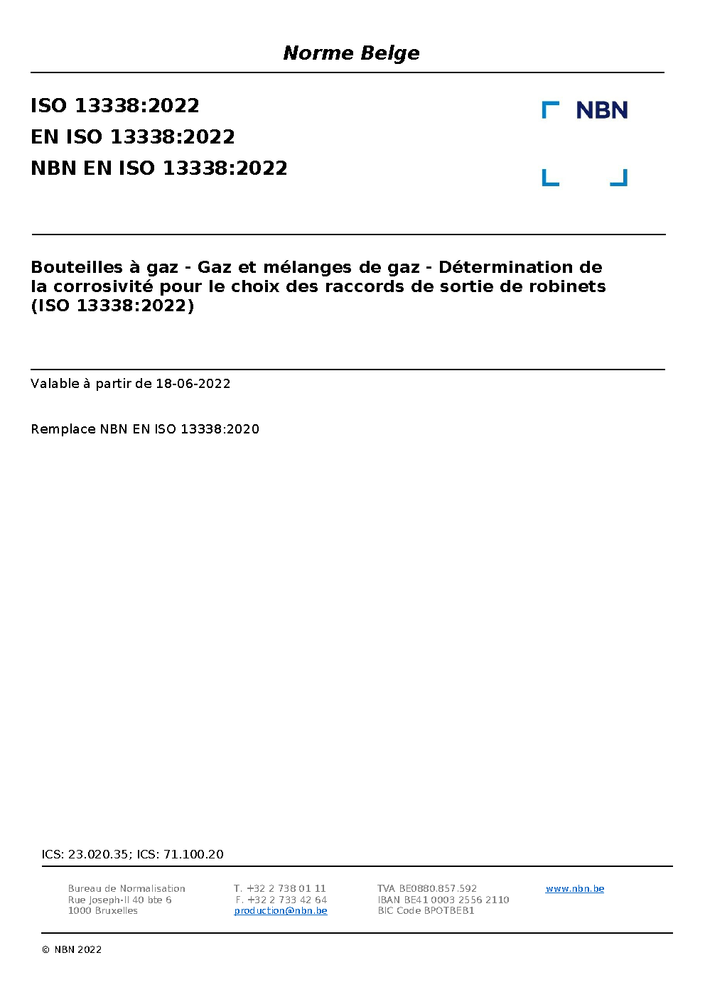 | Publisher | Bureau de Normalisation Belge (NBN) |