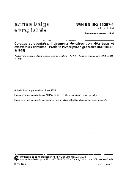 Periodontal curettes, dental scalers and excavators - Part 1: General requirements (ISO 13397-1:1995)