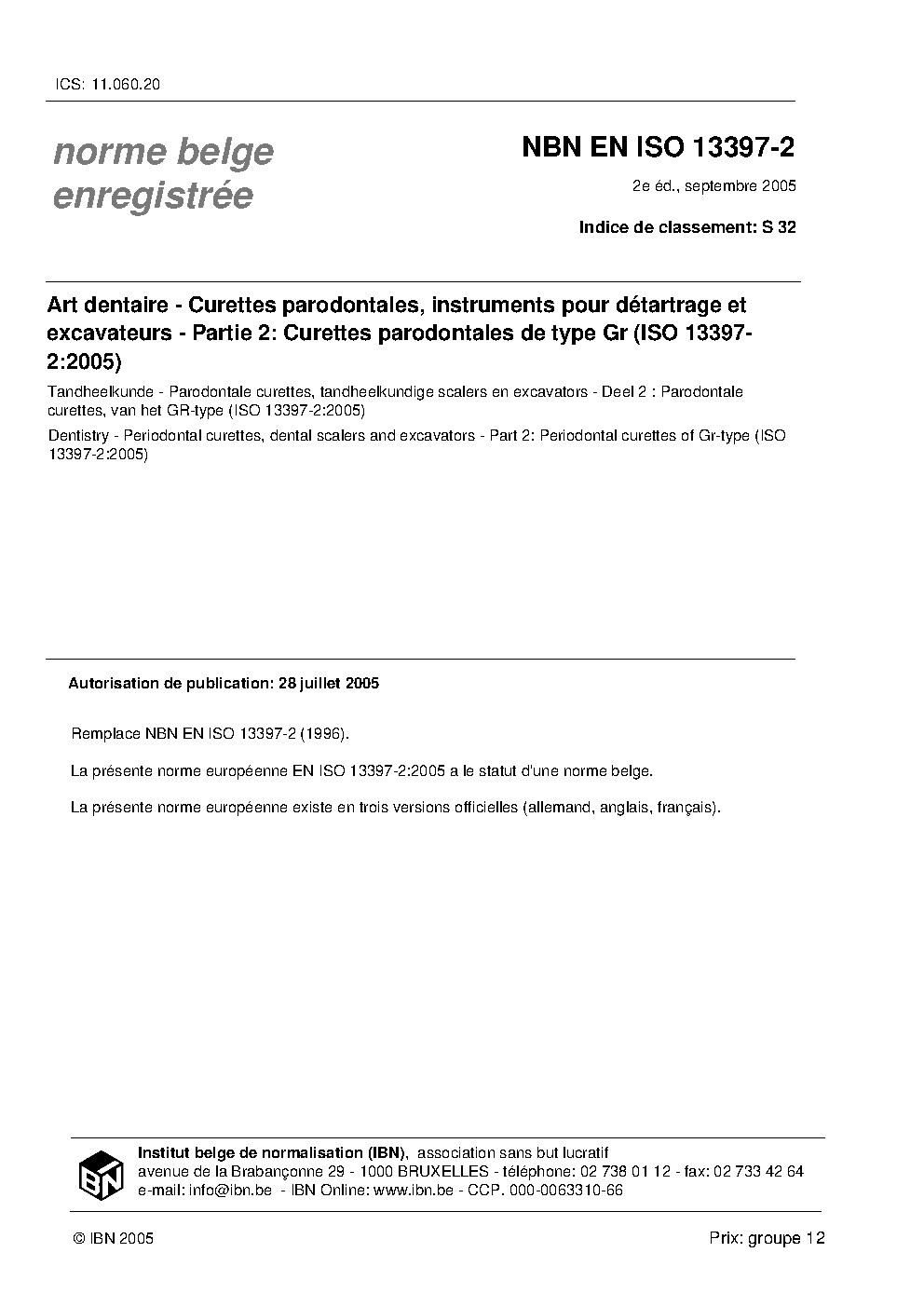| Publisher | Bureau de Normalisation Belge (NBN) |
