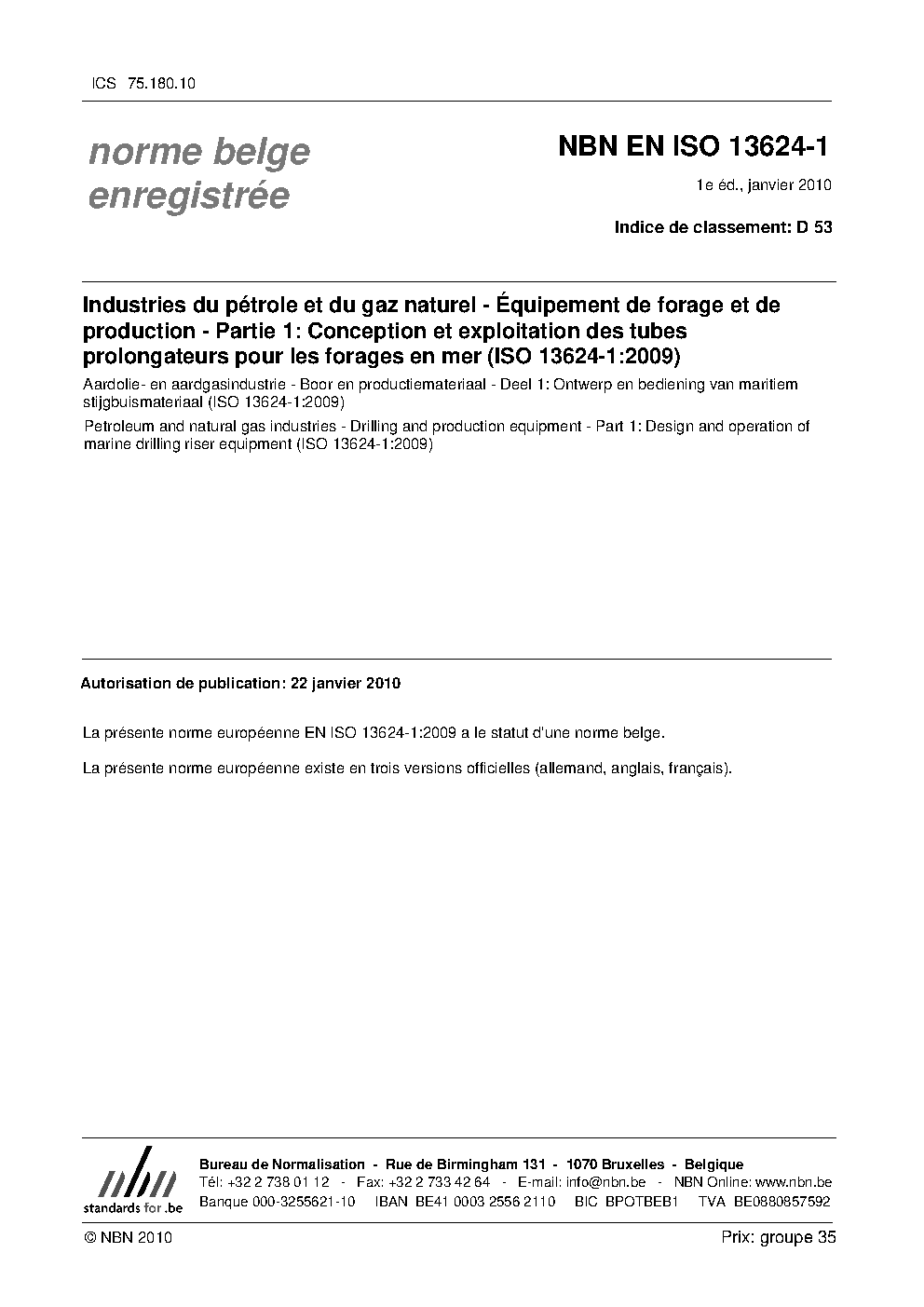 | Publisher | Bureau de Normalisation Belge (NBN) |