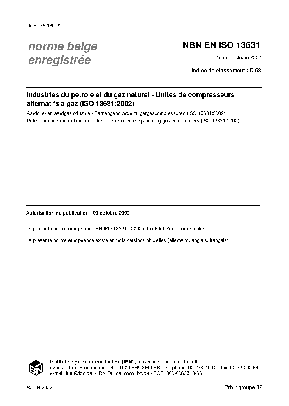 | Publisher | Bureau de Normalisation Belge (NBN) |