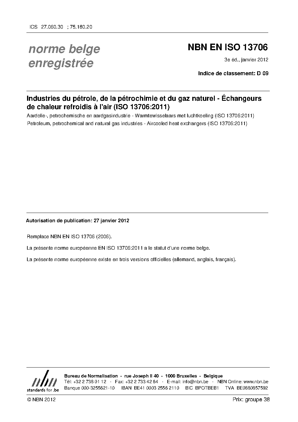 | Publisher | Bureau de Normalisation Belge (NBN) |