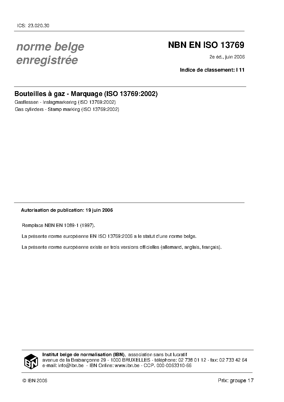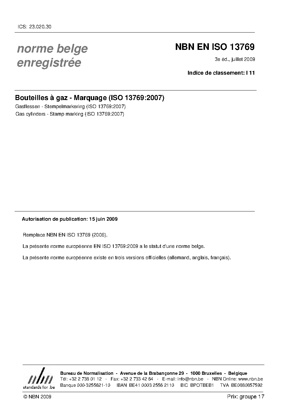 | Publisher | Bureau de Normalisation Belge (NBN) |