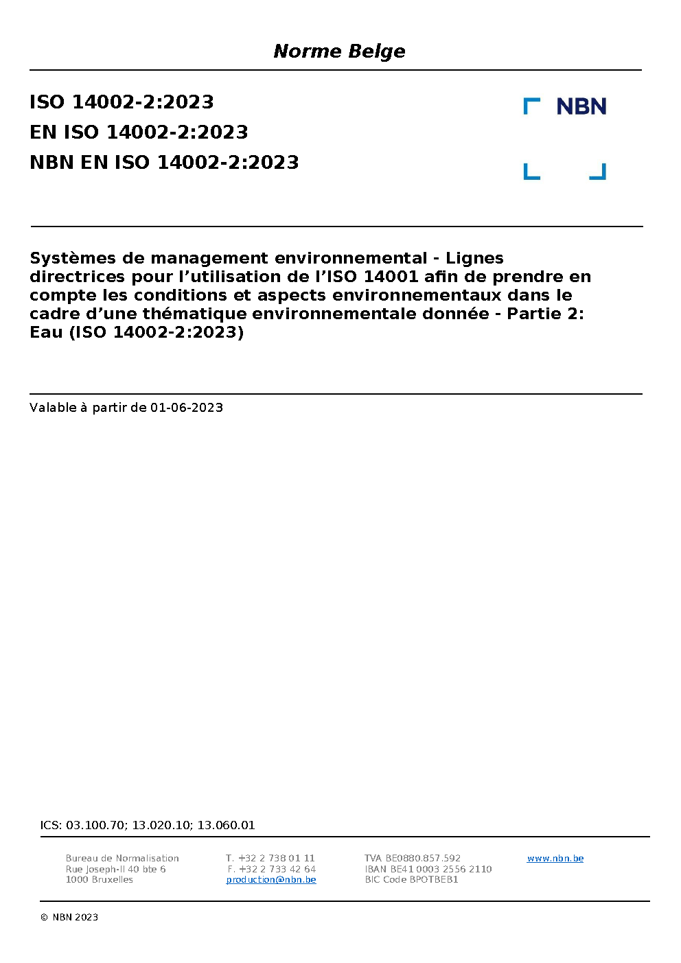 Environmental management systems - Guidelines for using ISO 14001 to address environmental aspects and conditions within an environmental topic area - Part 2: Water (ISO 14002-2:2023)