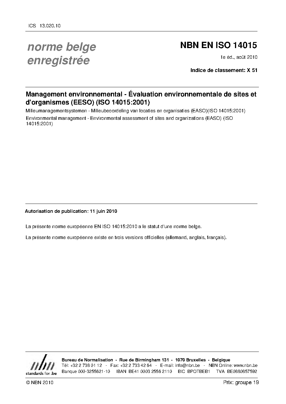 | Publisher | Bureau de Normalisation Belge (NBN) |