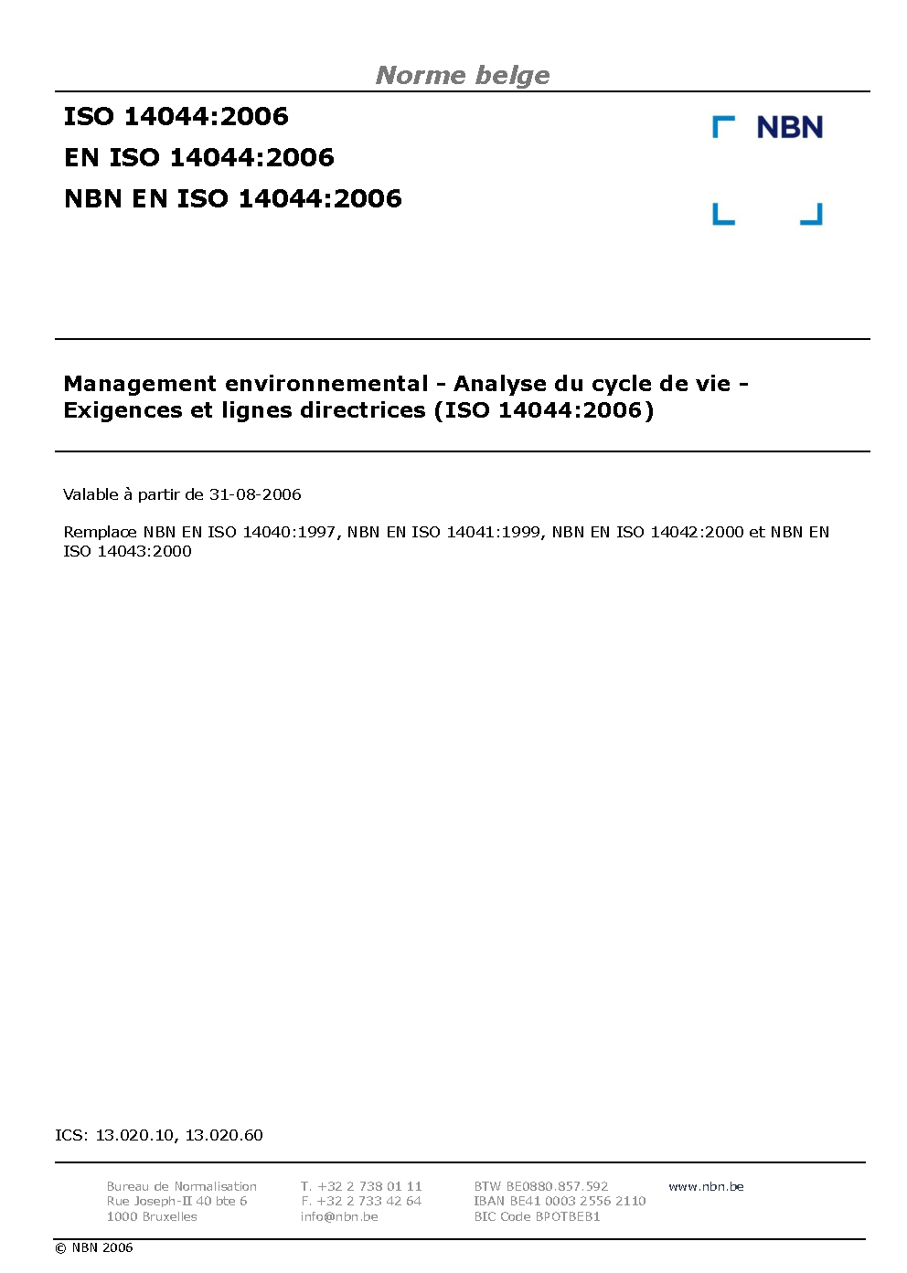 | Publisher | Bureau de Normalisation Belge (NBN) |