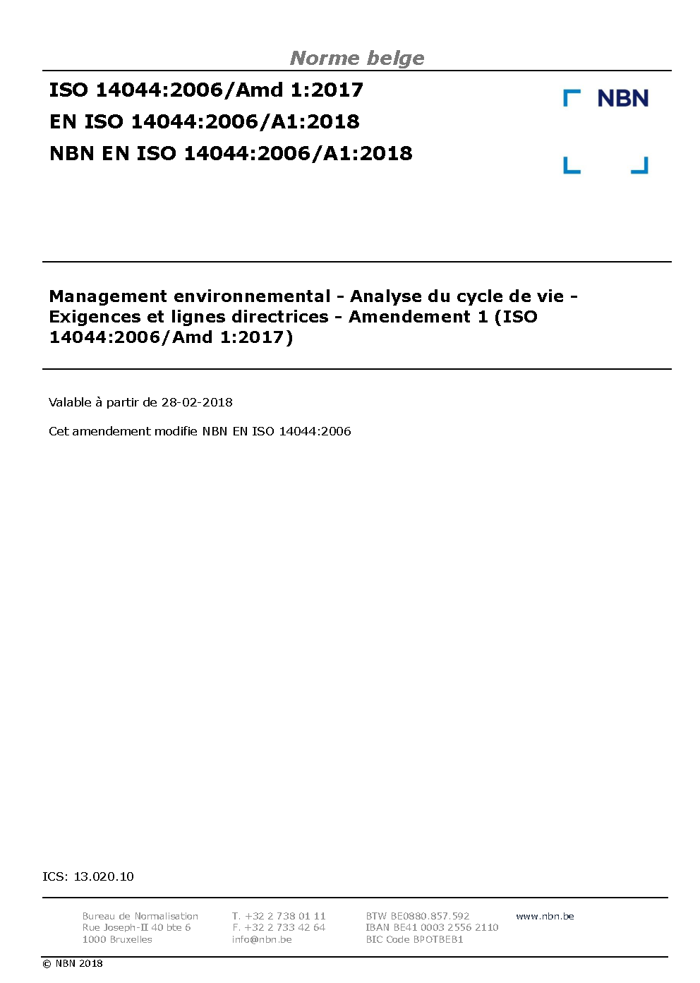NBN EN ISO 14044:2006/A1:2018