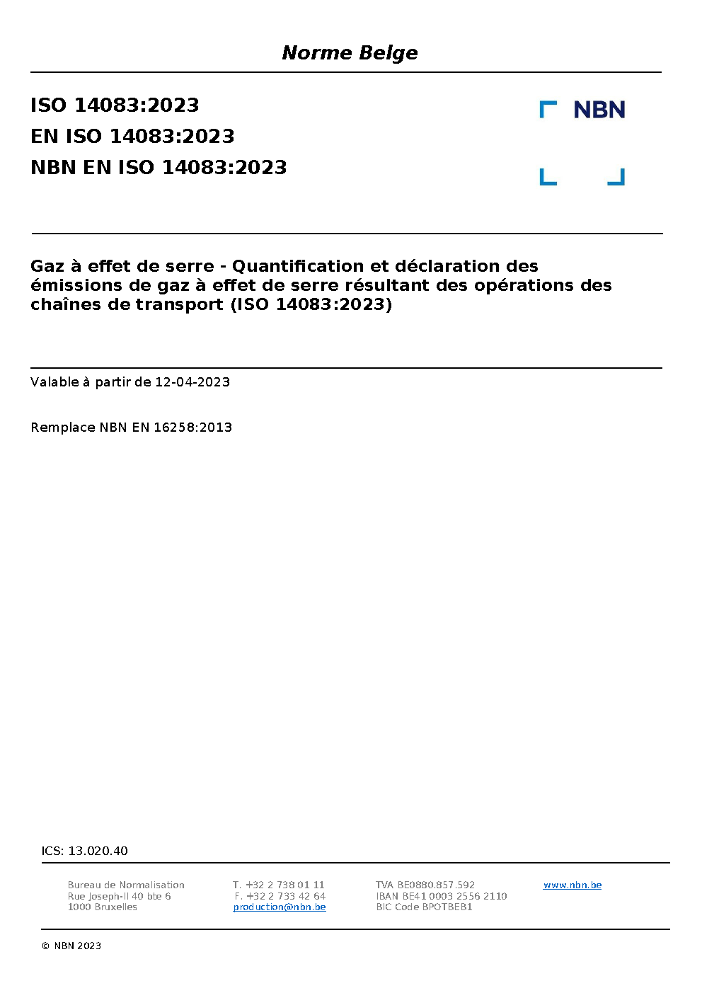 Greenhouse gases - Quantification and reporting of greenhouse gas emissions arising from transport chain operations (ISO 14083:2023)