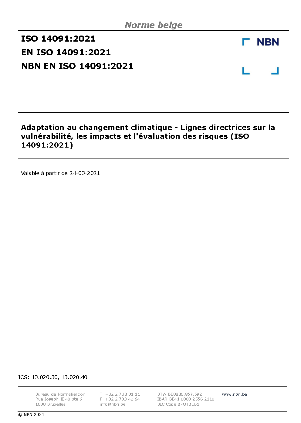 Adaptation to climate change - Guidelines on vulnerability, impacts and risk assessment (ISO 14091:2021)